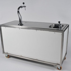 Bar witte beplating 160x0,60cm voorzien van een spoelbak met borstel en afschuimer.