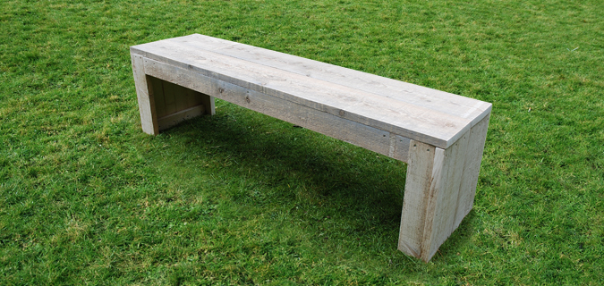 Bank Steigerhout, 160 cm x 30 cm greywash